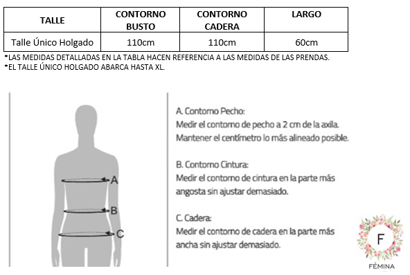 -Talle disponible: Talle Único Holgado que abarca hasta XL