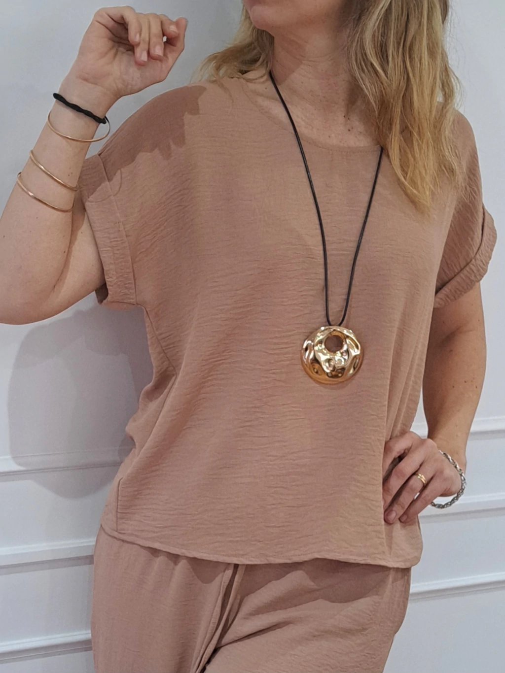 -Diseño: es un modelo suelto con cuello redondo y mangas cortas. Detalle de dobles en mangas. Divina para usarla tanto de día como de noche.