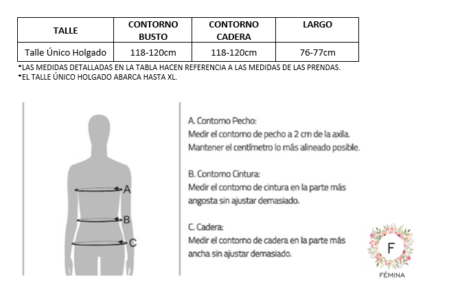 -Talle disponible: Talle Único Holgado que abarca hasta XL