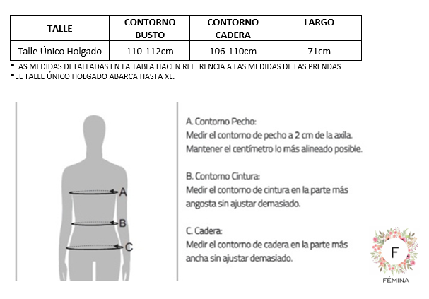 -Talle disponible: Talle Único Holgado que abarca hasta XL
