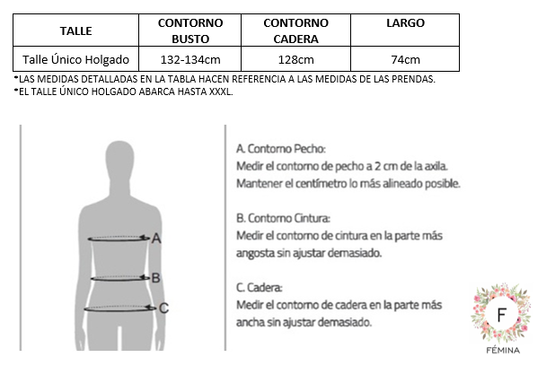 -Talle disponible: Talle Único Oversize que abarca hasta XXXL