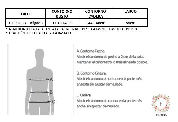 -Talle disponible: Talle Único Holgado que abarca hasta XXL